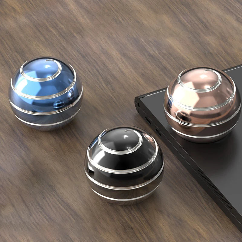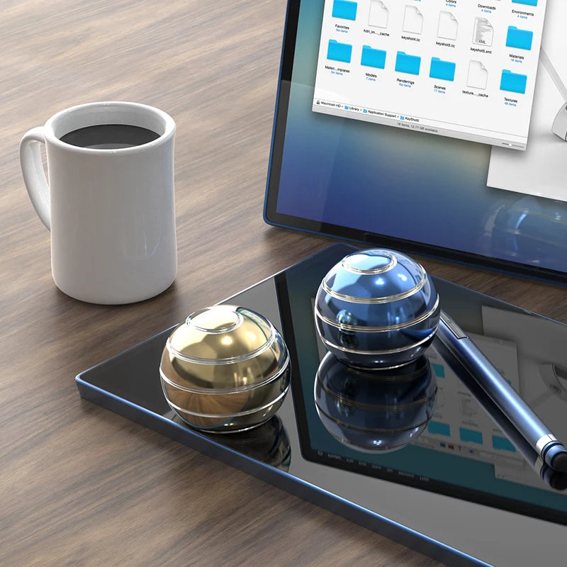 It is designed to spin on any desk or flat surface. The solid body and smooth finish make it very pleasant to interact with. It spins silently so you won't be bothering anyone around.